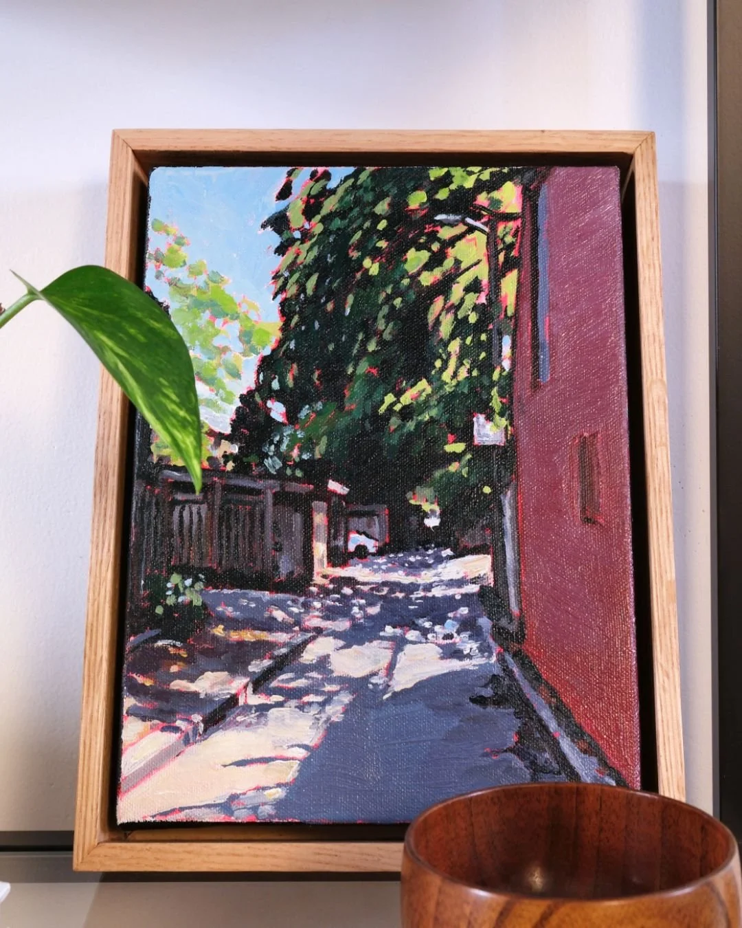 I paint oil paintings inspired by my daily life in Toronto — the shifting light, hidden corners, and quiet moments where nature presses up against the city.