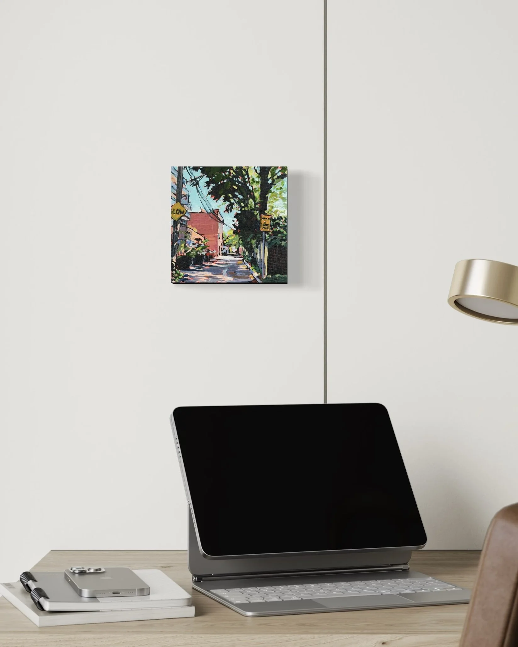 Tunnel Vision captures the moment of stepping into the shadowed start of a laneway, beneath the cool shade of an overhanging tree. Fences and buildings fall into shadow, leading the eye toward the sunlit world waiting ahead.